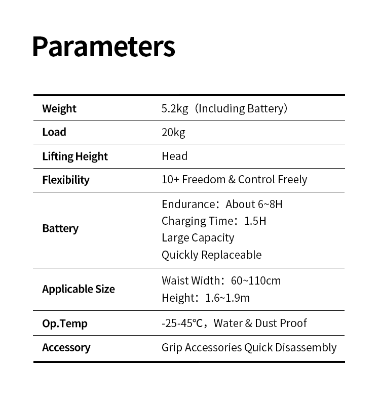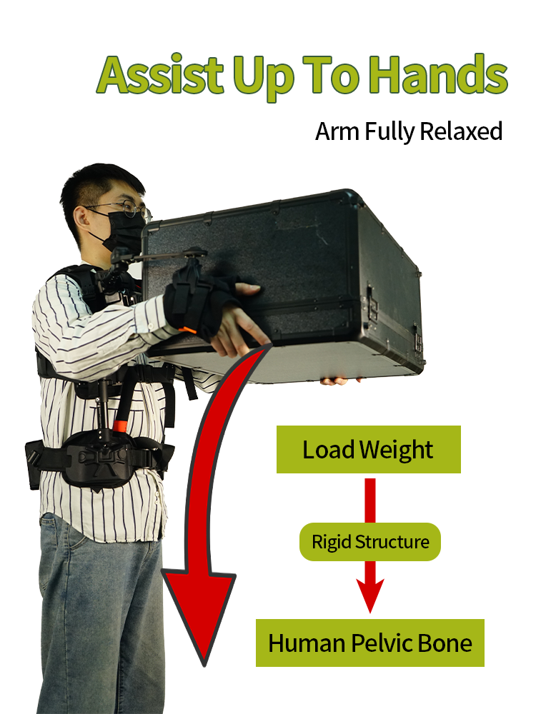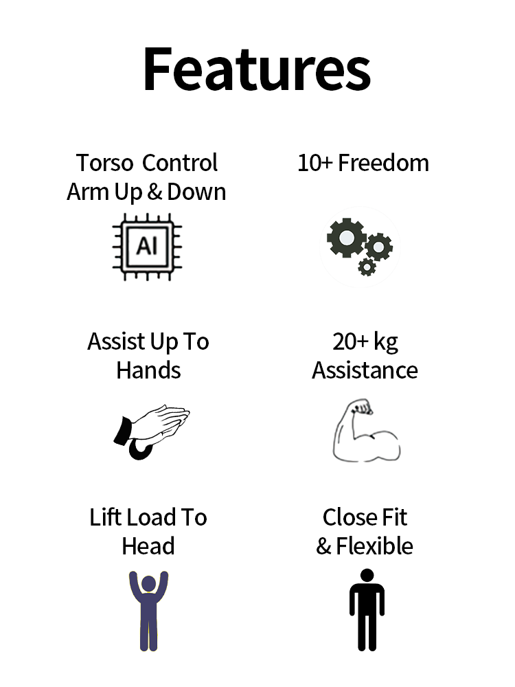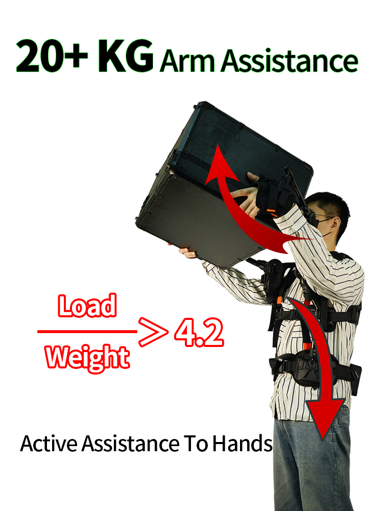 Ant-A1 is an arm assisted exoskeleton robot that assists in handling. Its unique power frame is distributed along the human body and arms, making it simple, close to the body, and compact; Ant-A1 has a human posture sensing system that can flexibly lift or lower loads according to the user's movements. It also has more than 10 degrees of freedom, easily adapting to the flexible movements of the human arms, shoulders, and trunk, and supporting arm lifts; At the same time, Ant-A1 has full arm assistance function, which can directly lift and pull the wearer's palm, achieving complete relaxation of the entire arm and shoulder when lifting heavy objects, and supporting long-term tool lifting operations.